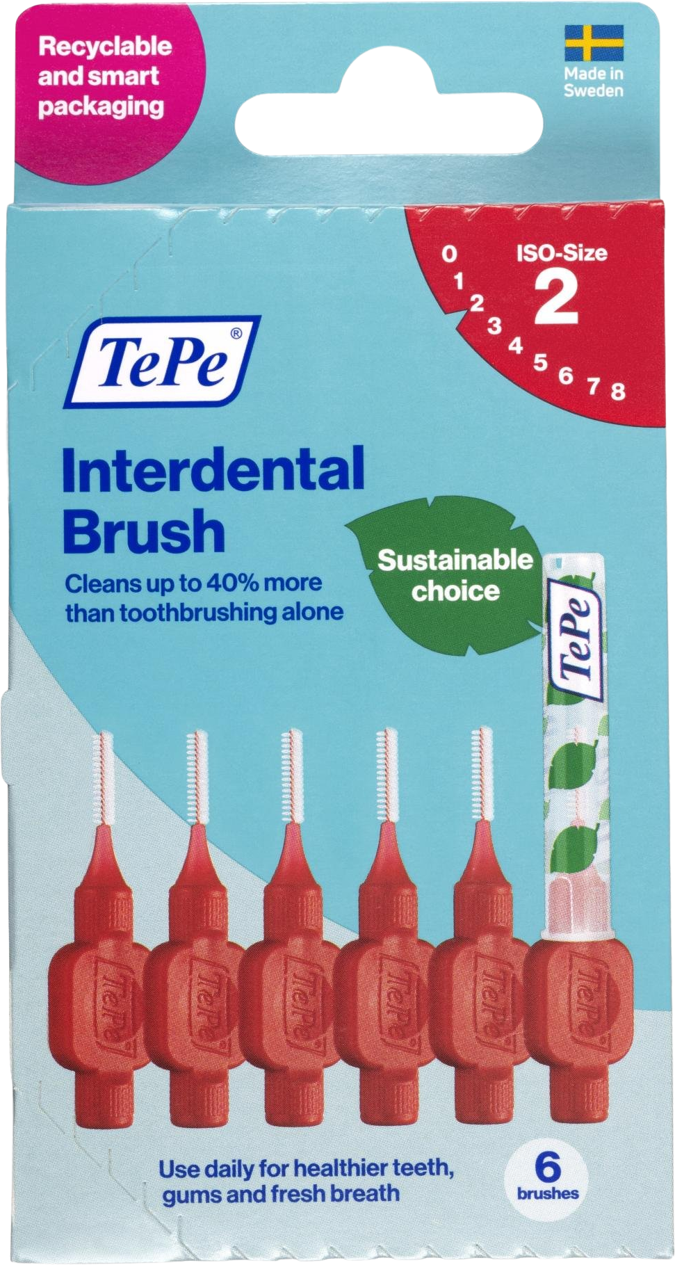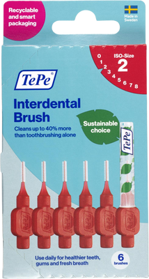 Červený TePe je určen pro velikost mezizubních