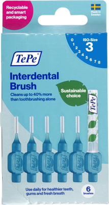 Modrý TePe je určen pro velikost mezizubních prostor