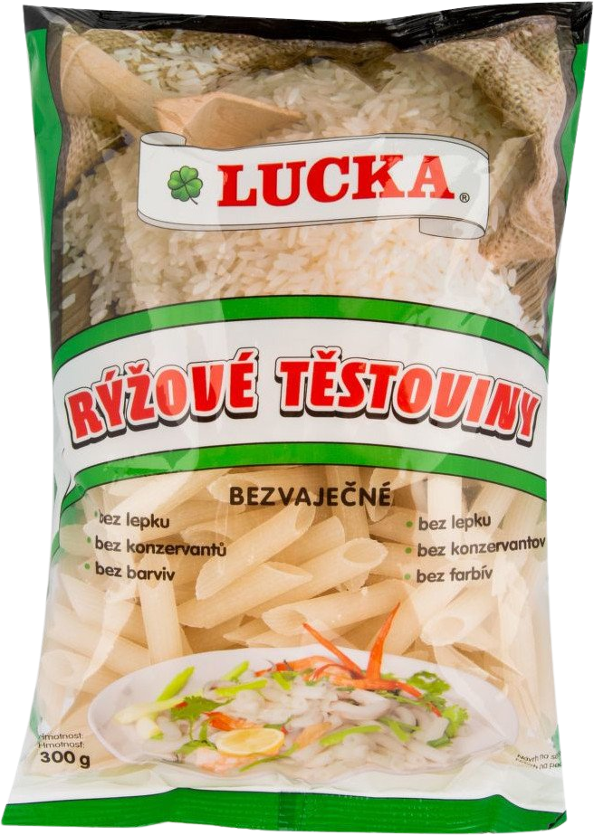 Bezlepkové těstoviny z rýžové mouky vhodné pro celiaky. Rýžové těstoviny LUCKA neobsahují konzervanty ani barviva. Rychle je uvaříte a v kuchyní mají široké využití. Více informací