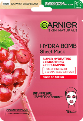 Textilní hydratační maska Hydra Bomb nabije váší pleť hydratační bombou již za 15 minut! Okamžitě hydratuje pokožku a regeneruje jí. Více informací