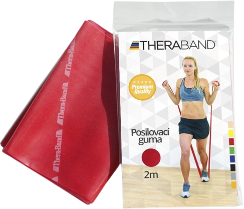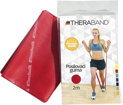 Americká značka THERABAND patří ke špičce v oblasti cvičebních a rehabilitačních pomůcek. Posilovací gumy THERABAND vynikají přesností, kvalitou i provedením a jsou velmi široce využitelné na procvičení celého těla při minimálním požadavku na prostor. Můžete je mít všude s sebou a zacvičit si tak kdykoliv a kdekoliv. Gumy jsou vyrobeny pouze z přírodního latexu. Šířka gumy je 12,7 cm. Síla potřebná k natažení o 100 % je 1,7 kg.
