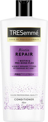 TRESemmé Biotin Repair šampon a kondicionér tvoří rutinu, která napravuje poškozené vlasy a předchází dalšímu poškozování.