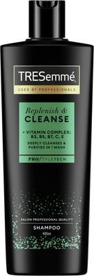 TreSemmé Replenish & Cleanse Šampon s vitamíny na mastné vlasy 400 mlVše o produktuDoplňující informaceHodnocení produktuToužíte po nádherně čistých, ale zároveň vyživených vlasech? Už nemusíte hledat dál. Právě pro vás totiž značka TRESemmé vyvinula zatím svoji neúčinnější čisticí řadu Replenish & Cleanse. A to už po jednom použití. Zanechá vaše vlasy krásně čisté, měkké na dotek a voňavé, jako kdybyste právě opustila salón. Navíc je tato řada vybavena profesionální Pro Style Technologií™ vyvinutou našimi předními vědeckými experty. Je založena na obsahu účinných aminokyselin a ceramidu a postará se jak o silnější a poddajnější vlasy, tak o uhlazenější účes.
