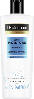 .TRESemmé Rich Moisture kondicionér obsahuje profesionální Pro Style Technologii™ vyvinutou našimi předními vědeckými experty. Je založena na obsahu účinných aminokyselin a ceramidu a postará se jak o silnější a poddajnější vlasy, tak o uhlazenější účes. Více informací