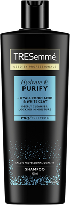TreSemmé Hydrate & Purify Čistící šampon na mastné vlasy 400 mlVše o produktuDoplňující informaceHodnocení produktuChcete po každém mytí zažívat pocit důkladně vyčištěných, ale zároveň krásně vyživených a hydratovaných vlasů, který vám umožní začít den s novou dávkou sebevědomí? Ten pocit teď můžete snadno získat bez toho, aniž byste museli navštívit profesionální salon. Stačí vyzkoušet naši řadu od TRESemmé Hydrate& Purify, která byla speciálně vyvinuta pro mastné vlasy se sklonem k vysušeným konečkům. Obsahuje vysoce účinnou kyselinu hyaluronovou a bílý jíl. Díky obsahu těchto dvou ingrediencí šampon vaše vlasy efektivně vyčistí a zároveň v nich uzavře vlhkost a hydratuje je. Profesionální Pro Style Technologie™, která byla vyvinuta našimi předními vědeckými experty, je založena na obsahu účinných aminokyselin a ceramidu a postará se jak o silnější a poddajnější vlasy, tak o uhlazenější účes.