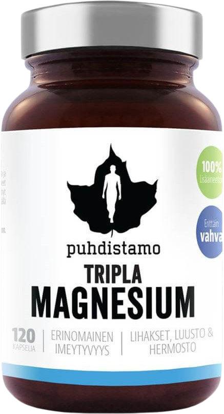 Tripple Magnesium obsahuje tři chelátově vázané formy hořčíku – malát hořečnatý, bisglycinát hořečnatý a taurát hořečnatý. Hořčík je v těchto formách vázaný s druhou látkou (kyselinou jablečnou, L-glycinem nebo L-taurinem stejným druhem vazby, která se přirozeně vyskytuje v přírodě = chelátová (organická vazba). Díky tomu je pro tělo velmi dobře využitelný, řádově o desítky procent více než u anorganických vazeb (oxidy,…).