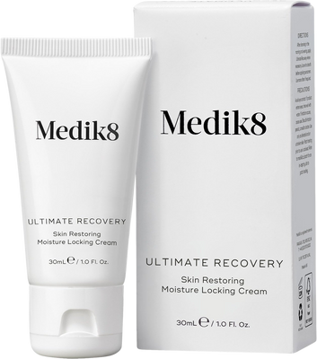 Medik8 Ultimate Recovery - Intenzivně obnovující krém 30 mlVše o produktuDoplňující informaceHodnocení produktuTento vysoce hydratační a regenerační krém pomáhá obnovit funkci kožní bariéry a výrazně zlepšit vzhled kůže během velmi krátké doby. Obsažený allantoin redukuje podráždění a svědění pokožky a podporuje syntézu kolagenu v pokožce. Tím působí preventivně proti známkám stárnutí pleti. Beta-glukan urychluje hojení pokožky a současně ji hydratuje, vitamín E napomáhá regeneraci kůže a její ochraně proti UV záření.