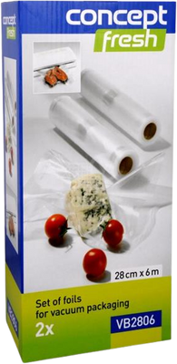 Concept VB2806 Sada fólií pro vakuové balení 2 ksVše o produktuDoplňující informaceHodnocení produktuSada obsahuje 2 ks kusy rolí speciální drážkované fólie pro vakuové balení ve vakuových svářečkách VA-0010.