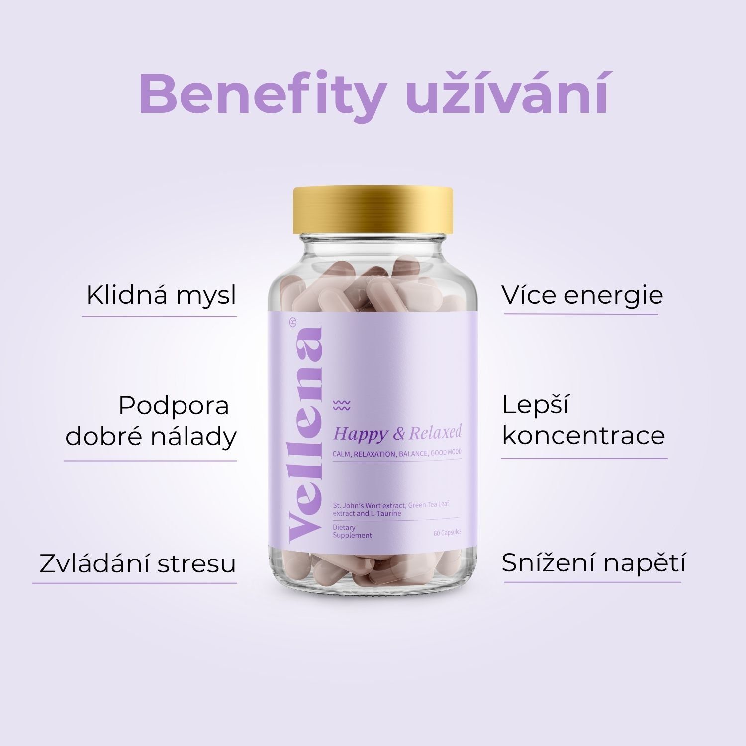 Zkuste také další výrobky značky Vellena, které uvidíte v kategoriích Stres a duševní rovnováha, Doplňky stravy a Spánek, stres a podpora nálady. Pokud si nejste jistí výběrem tohoto produktu, zkuste se ještě podívat do kategorie Třezalka.