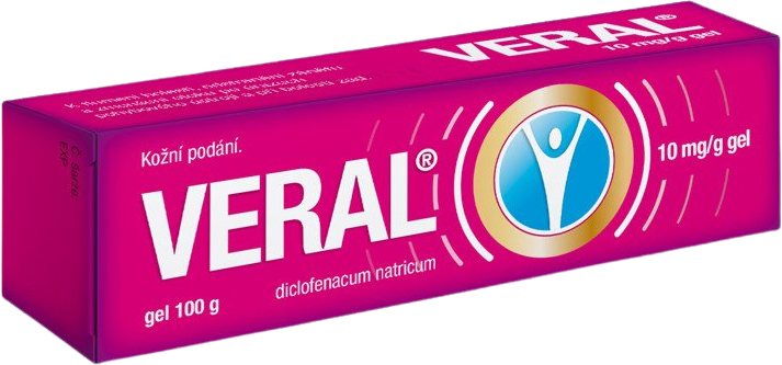 Diclofenacum natricum (diklofenak), léčivá látka gelu VERAL, patří do skupiny léčiv, která se označují jako nesteroidní protizánětlivá léčiva (NSAID). Diklofenak tlumí bolest, působí protizánětlivě a zmírňuje otoky.