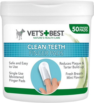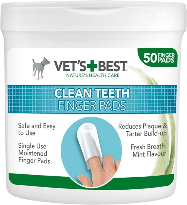 Vet‘s Best čisticí tampony na zuby pro psy jsou alternativou klasického čištění zubním kartáčkem a pastou. Poskytují účinný způsob čištění zubů psů a udržují dobrou hygienu ústní dutiny. Pravidelné používání může pomoci kontrolovat tvorbu plaků, přispět ke snížení vzniku zubního kamene a podpořit čerstvý dech. Tyto speciálně navržené náprstky jsou bezpečné a snadno použitelné, což umožňuje majiteli pejska jednoduchým otřením vyčistit zuby domácího mazlíčka. Pro dosažení nejlepších výsledků doporučujeme používat denně.