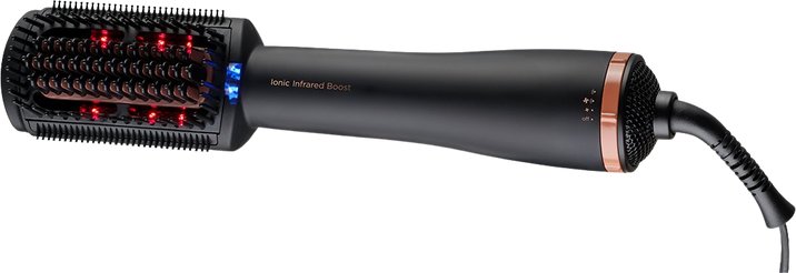 Žehlicí horkovzdušný kartáč na vlasy disponuje infračervenou a iontovou technologií. Je vybaven 3 režimy, které zastanou práci běžného fénu, kulmofénu i žehličky na vlasy. Velkou předností je, že ho můžete používat na suché i mokré vlasy. Více informací