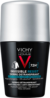 Vichy Homme Invisible Resist 72H antiperspirant proti skvrnám i proti podráždění 50 mlVše o produktuDoplňující informaceHodnocení produktuVICHY Invisible Resist 72H antiperspirant proti skvrnám i proti podráždění.