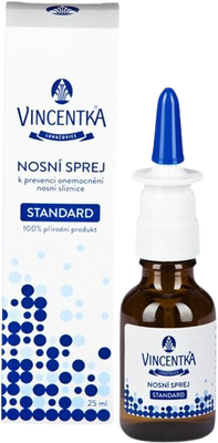 Vincentka Nosní sprej STANDARD hypotonický 25 mlVše o produktuDoplňující informaceHodnocení produktuHypotonický nosní sprej určený pro hygienu nosních dutin a prevenci onemocnění nosohltanu, který obsahuje minerální vodu z přírodního léčivého zdroje Vincentka.