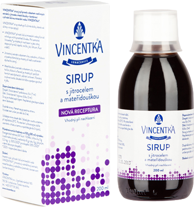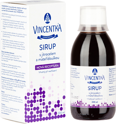 Vincentka Sirup s jitrocelem a mateřídouškou přináší zajímavou kombinaci tří složek - minerální vody Vincentka, jitrocelového extraktu a mateřídouškového extraktu. Všechny tyto tři složky jsou známé pro svou prospěšnou funkci na zahleněné dýchací cesty a zmírnění kašle. Svou cenou se přibližuje tradičnímu jitrocelovému sirupu, avšak zde kombinuje další zmíněné složky. Dávkování sirupu je přehledně popsáno na obalu. Užívat ho lze okamžitým polknutím, nebo například do zchladlého čaje na doslazení.