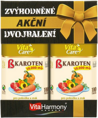VitaHarmony Betakaroten 10000 Promobalení 2 x 100 tobolekVše o produktuDoplňující informaceHodnocení produktuBeta karoten je významným prekurzorem vitaminu A, který přispívá k udržení normálního stavu zraku, pokožky a imunity.