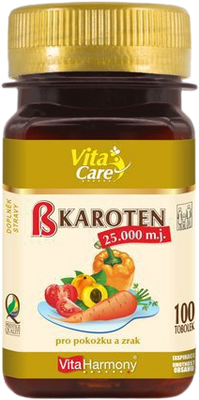 Beta karoten je opomíjený, ale velmi silný antioxidant, dokonce silnější než samotný vitamin A. 25.000 m.j. = 15 mg beta karotenu v jedné želatinové tobolce.