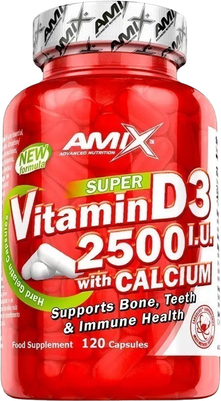 Vitamin D3 – 2500 I.U. s vápníkem je esenciální, v tucích rozpustný vitamín, který je velmi často nazýván jako sluneční vitamín. Více informací