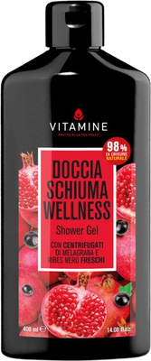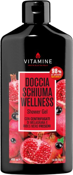 Vitamine Wellness Sprchový gel s čerstvě vylisovanou šťávou z granátového jablka a černého rybízu. 98% složek je přírodního původu. Více informací