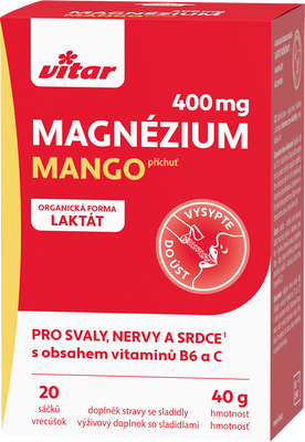 Vitar Magnezium Mango 400mg + vit.B6 + vit.C 20 sáčkůVše o produktuDoplňující informaceHodnocení produktu