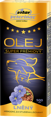 VITAR Veterinae lněný olej se získává ze semen lnu setého (Linum usitatissimum). Semena obsahují slizové polysacharidy, bílkoviny, tokoferoly, lignany a enzymy. Lněný olej je vynikajícím zdrojem energie pro aktivní psy při tréninku, v zimě nebo během rekonvalescence. Výrazně zlepšuje kvalitu a lesk srsti.