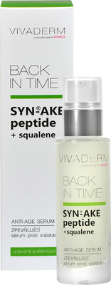 Vivaco Vivaderm Syn-Ake peptide Zpevňující sérum 30 mlVše o produktuDoplňující informaceHodnocení produktuDokonale vyhlazuje pleť od drobných vrásek a linek, bojuje proti předčasnému stárnutí a zabraňuje ochabování pokožky. Napomáhá eliminovat efekt „padajících rtů“ a redukuje vrásky kolem očí. Celkově pleť rozjasní a zlepší její pružnost. Vegan - neobsahuje živočišné složky.