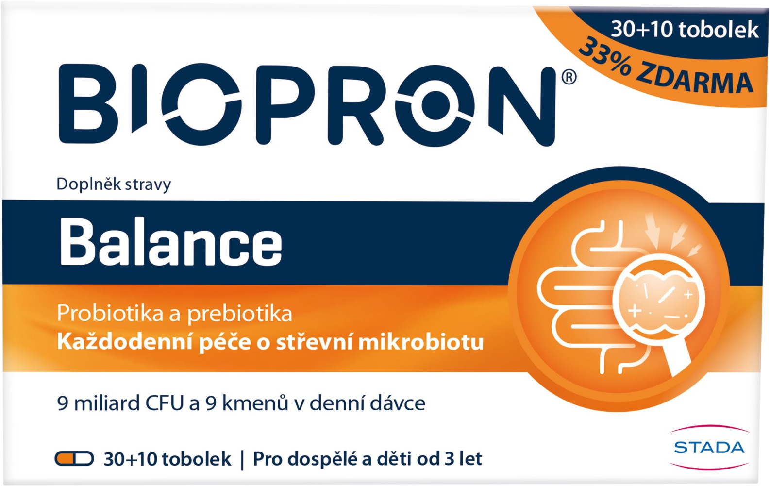 Biopron®9 je probiotický komplex s prebiotiky vhodný pro dlouhodobou péči o střevní mikrobiotu.
