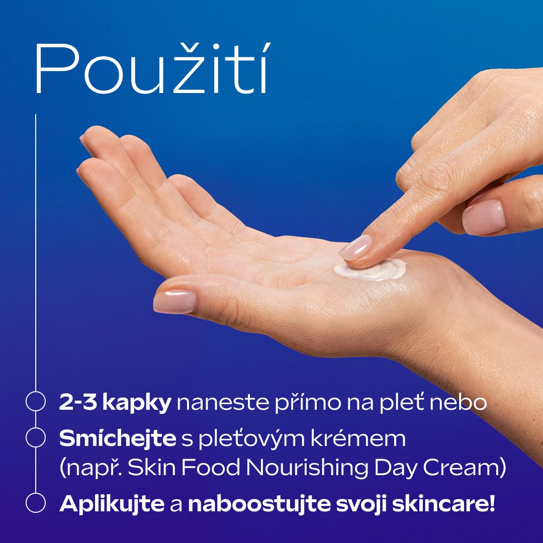Naneste 2-3 kapky na pokožku nebo smíchejte s oblíbeným pleťovým krémem. Sérum lze použít samostatně, přidat pár kapek do pleťového kŕemu, nebo jako finální ochrannou vrstvu, která pomáhá uzamknout aktivní látky a znásobit jejich účinek.