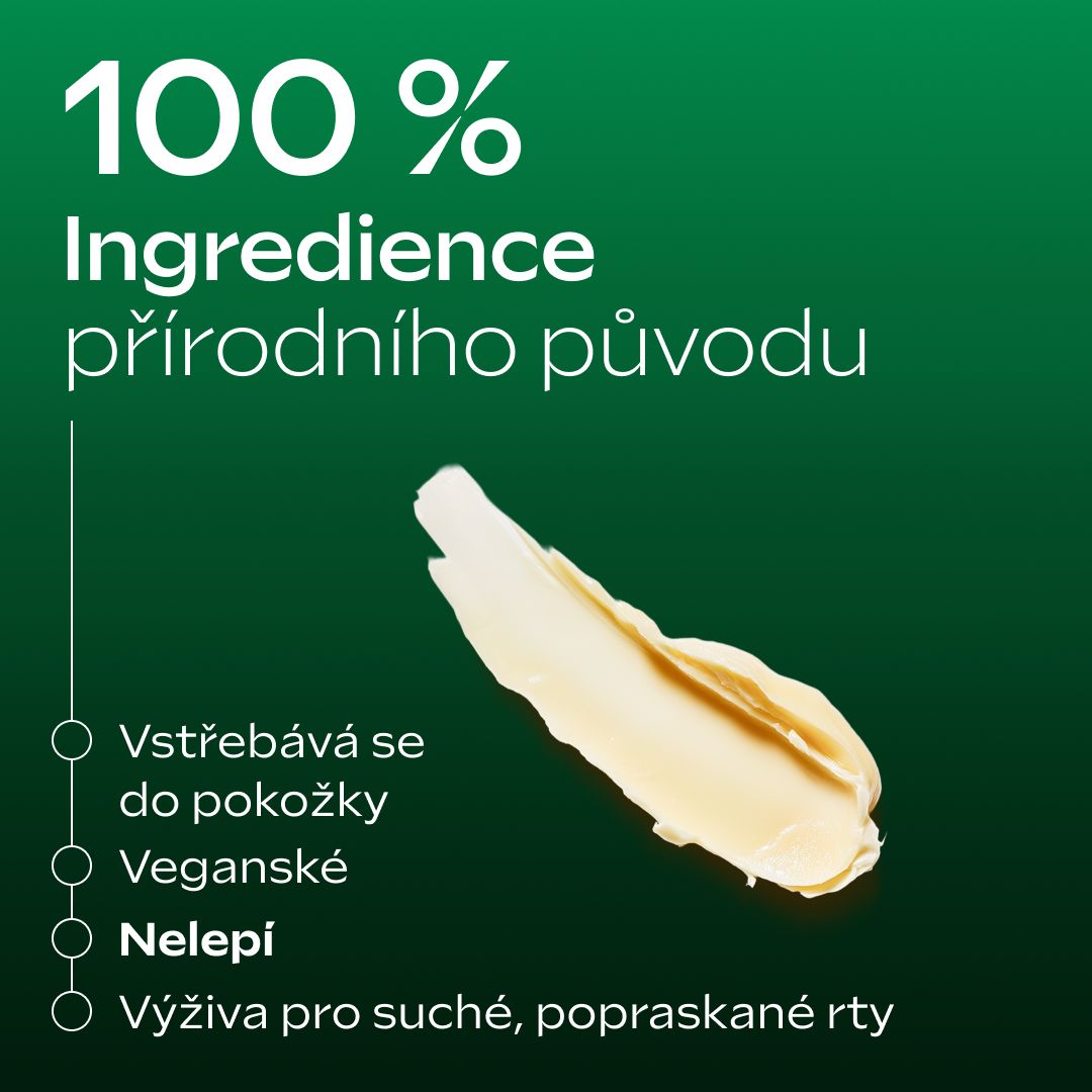 - Poskytuje suchým a popraskaným rtům výživnou hydrataci