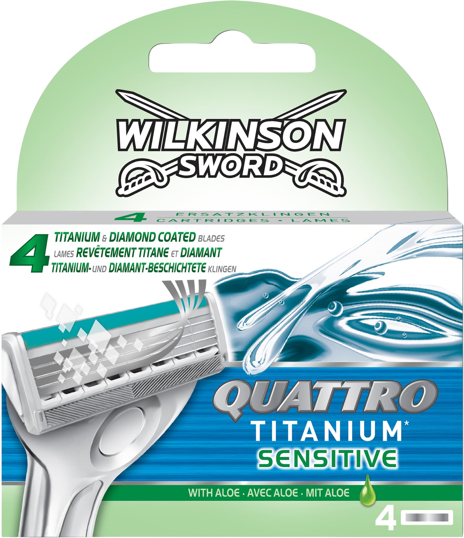 Holicí hlavice Quattro Titanium Sensitive dokonale oholí i tu nejcitlivější tvář. Hlavice obsahuje 4 břity s titanovým povrchem pro dokonalé oholení a hydratační pásek s Aloe Vera, vitamínem E a B5, které pokožku zklidňují a hydratují.
