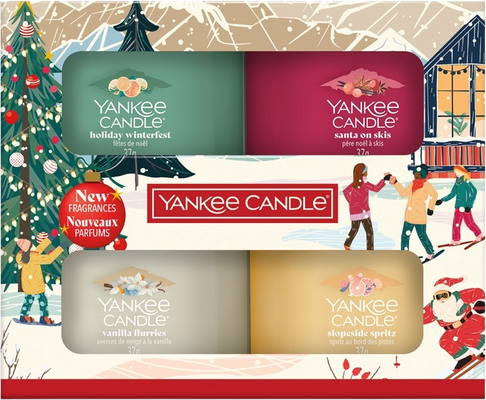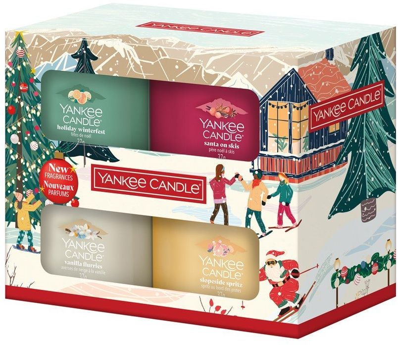 Sada 4 votivních svíček Yankee Candle s vůněmi Holiday Winterfest, Santa on Skis, Slopeside Spritz a Vanilla Flurries. Doba hoření až 10 hodin, krásné dárkové balení. Více informací