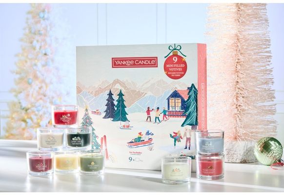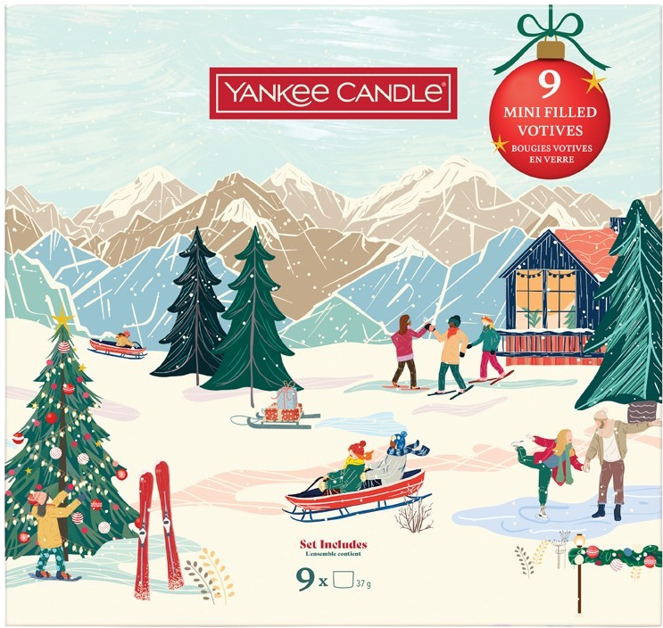 Vánoční sada 9 votivních svíček ve skle od značky Yankee Candle s vůněmi ovoce, skořice, vanilky a jehličí. Každá hoří až 10 hodin. Krásný dárek pro vaše blízké. Více informací