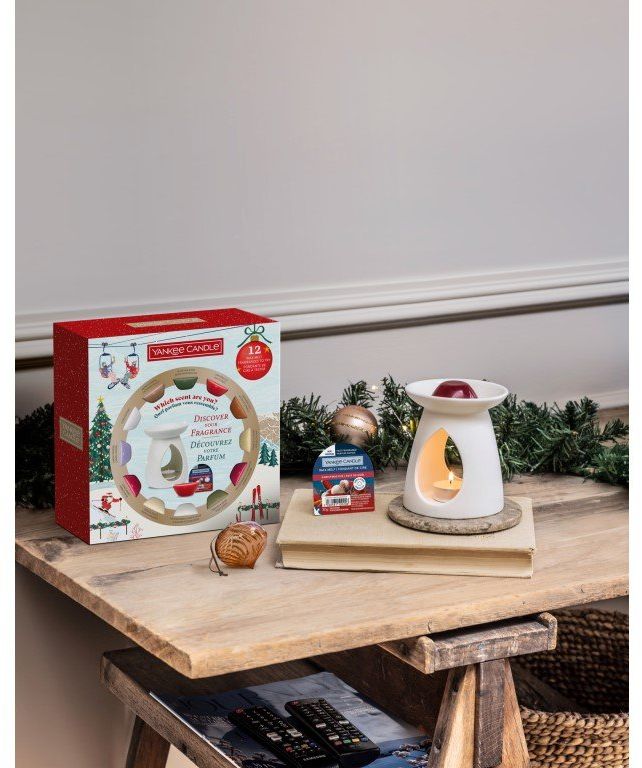 Vánoční dárková sada Yankee Candle s aromalampou, čajovou svíčkou a 12 intenzivními vosky ve vánočních vůních, které provoní váš domov až na 8 hodin. Více informací