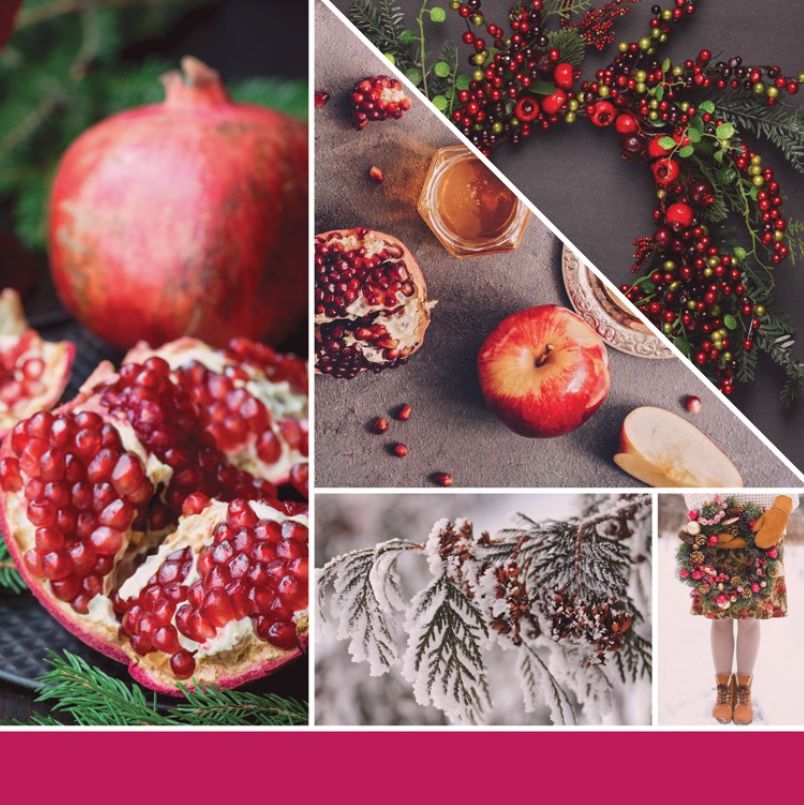 - Hlava: jablko, granátové jablko, růžový ananas, cesmína