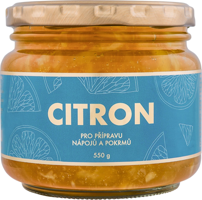 Konzervované plody citronu 59 % (50 % citron, cukr), cukr, fruktóza, voda, regulátor kyselosti kyselina citronová, zahušťující látka karagenan, antioxidant kyselina askorbová (vitamín C), jedlá sůl, aroma citron.