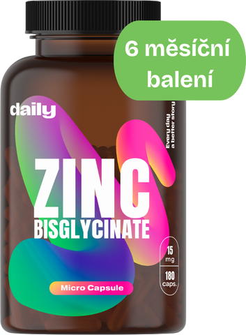 Čistý bisglycinát zinku s vysokou vstřebatelností a šetrností k trávení. 15 mg v kapsli pokrývá 150 % denní dávky. Výhodné balení na 6 měsíců. Vyrobeno v Česku, bez plnidel a syntetik.