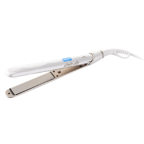 - Keramická žehlička na vlasy – Vhodná pro všechny typy vlasů. Destičky žehličky se nahřívají rovnoměrně, proto nedochází k výkyvům teploty.