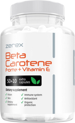 Zerex Betakaroten Forte + Vitamin E - zářivá a mladá pleť 60 kapslíVše o produktuDoplňující informaceHodnocení produktu