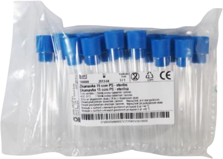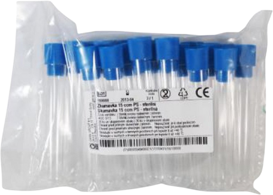Zkumavky jsou určeny k odběru a uchovávání vzorků, zejména biologického materiálu, k provádění některých laboratorních testů, chemických reakcí apod. Materiál polystyren (PS). Více informací