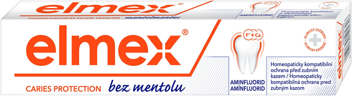 Zubní pasta elmex® bez mentolu poskytuje ochranu před zubním kazem v souladu s homeopatií. Zubní pasta je vyvinuta speciálně ve spolupráci s homeopaty. Více informací